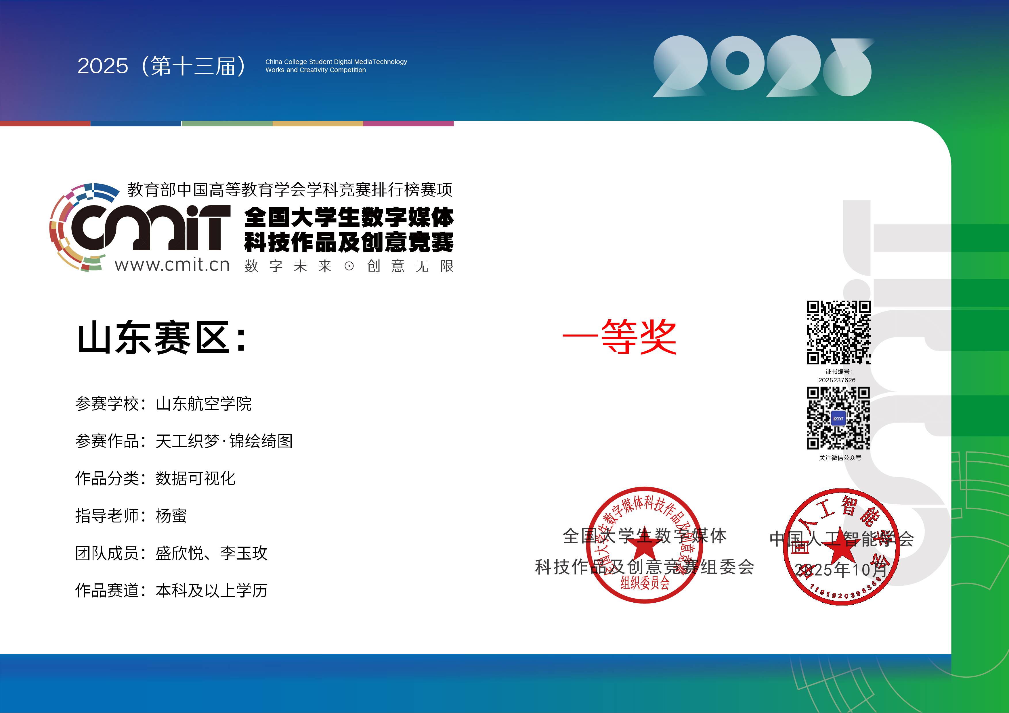 2025年全国大学生数字媒体科技作品及创意竞赛中获得佳绩